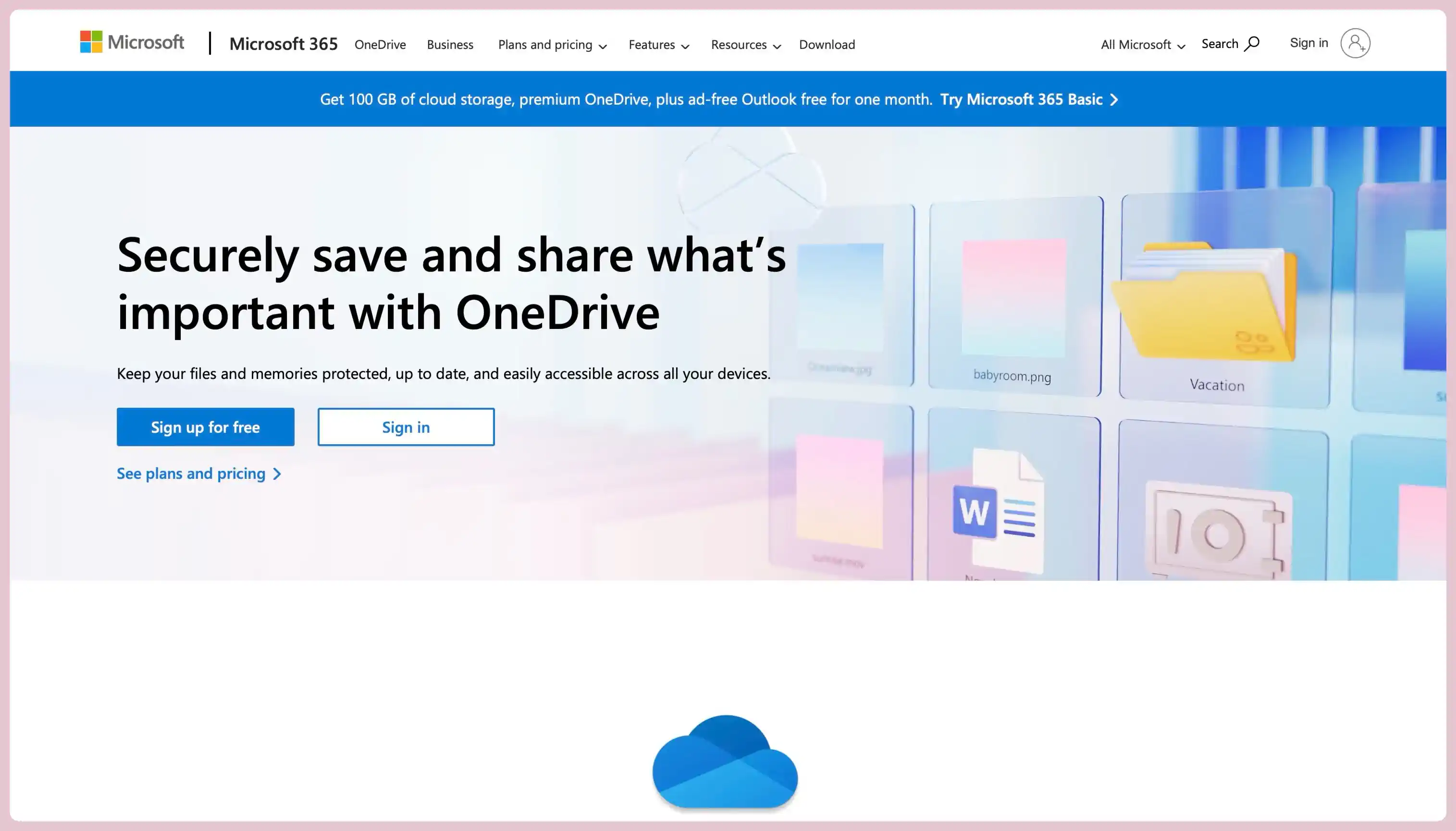 Microsoft 365 Basic: $1.99/місяць за 100 ГБ
